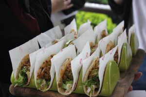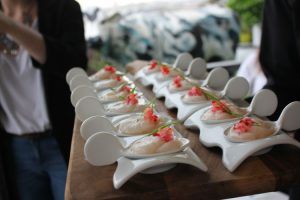 On arrival we were treated to a little taste of how the VIP guests at the party will be eating. Canapes included stir fried noodles, scallop ceviche, risotto balls and chicken tacos. And also some delicious wines. All of which I’d be totally fine eating the week before a competition. Which is why I’m not a pro athlete.