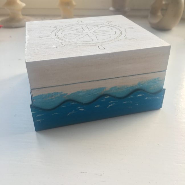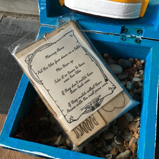 Parcelhero asked me if I would create a little gift box to include in a charity auction for Great Ormond Street Hospital. They sent me a blank box, and, with a little (ok a lot) of help from Mr Chick I created a little seaside themed box, containing a hand made memory game (you know, one of those ones where you turn over cards to make pairs).