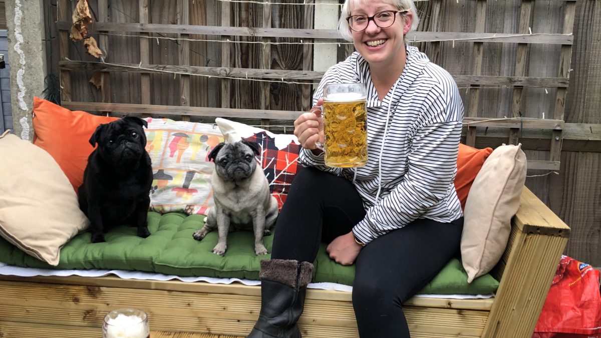 Then we walked the Pugs and discovered the pub near us were also selling steins so we sat outside and drank another one.