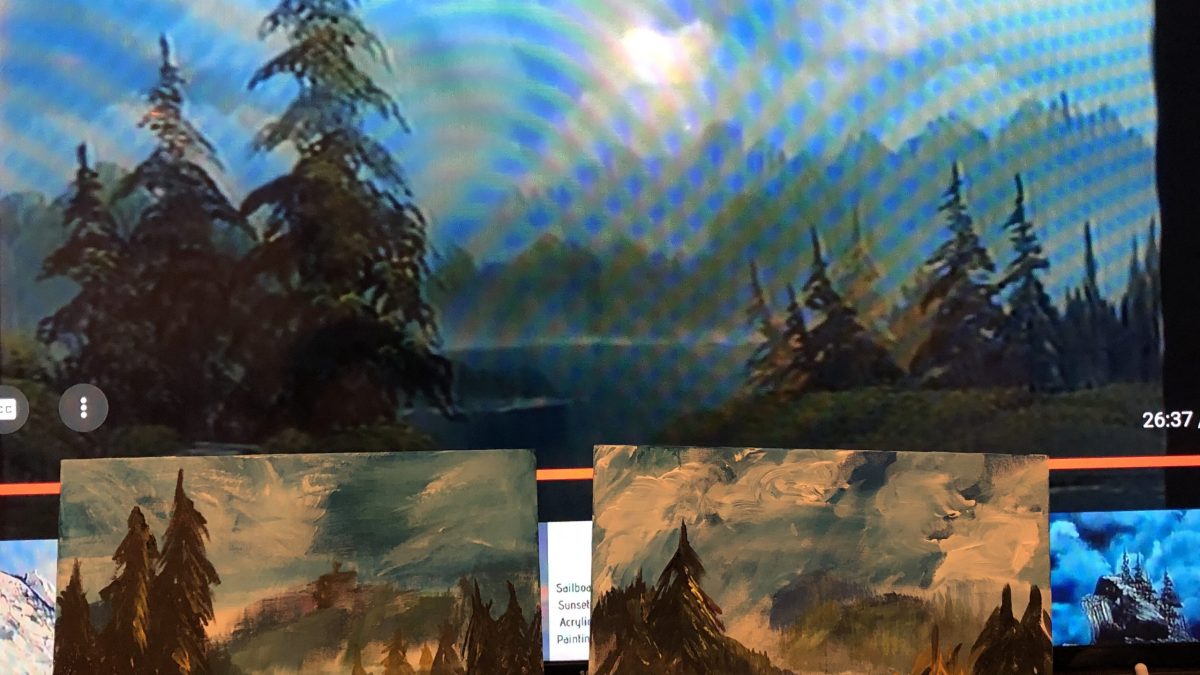 Last Wednesdays entertainment was a virtual trip to Pizza Express. This week Mr LLL organised us a paint along with Bob Ross.
