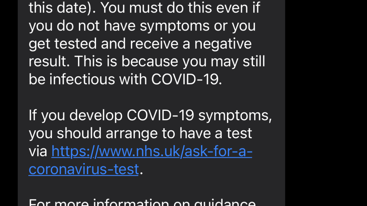 On Saturday morning I went back to the gym with a client for our first gym session post half-arsed “lockdown”. On Sunday night they started to feel ill, on Monday they had a Covid test and on Tuesday that test came back positive. Tuesday lunchtime I then received the dreaded text from Test & Trace.