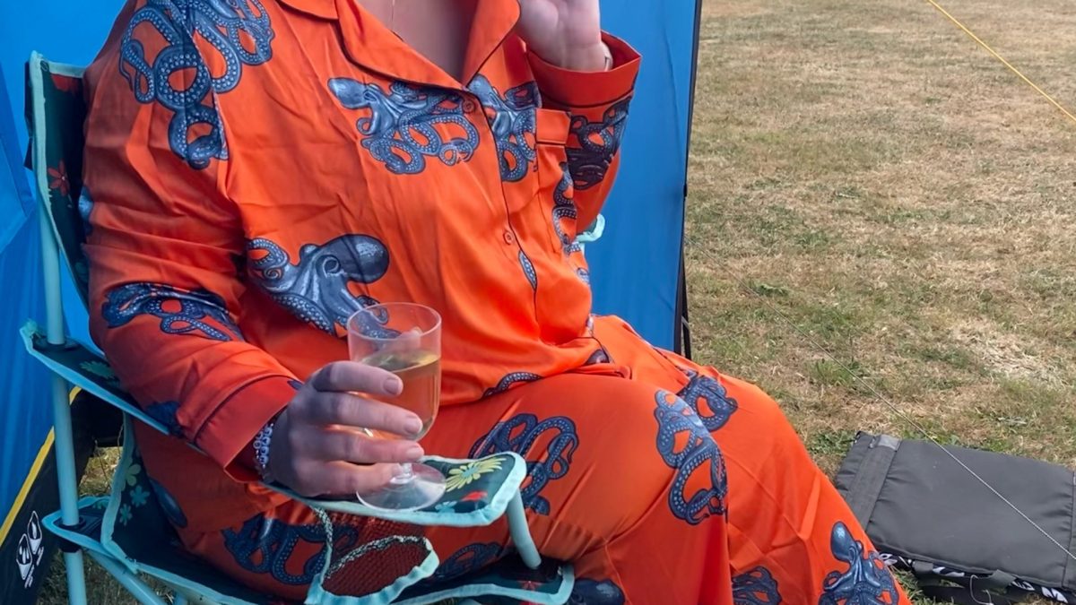 Shine camp is down in Dorset, which is a long 250 miles in a car with no air conditIoning. But we made it in time to test negative for Covid, put up a tent, have a shower and eat some delicious pizza. On Saturday we were very tired so made the most of being in Dorset on the Jurassic coast by sleeping next to the tent all day, then we had a bbq and drank some wine whilst wearing my fancy new pyjamas.
