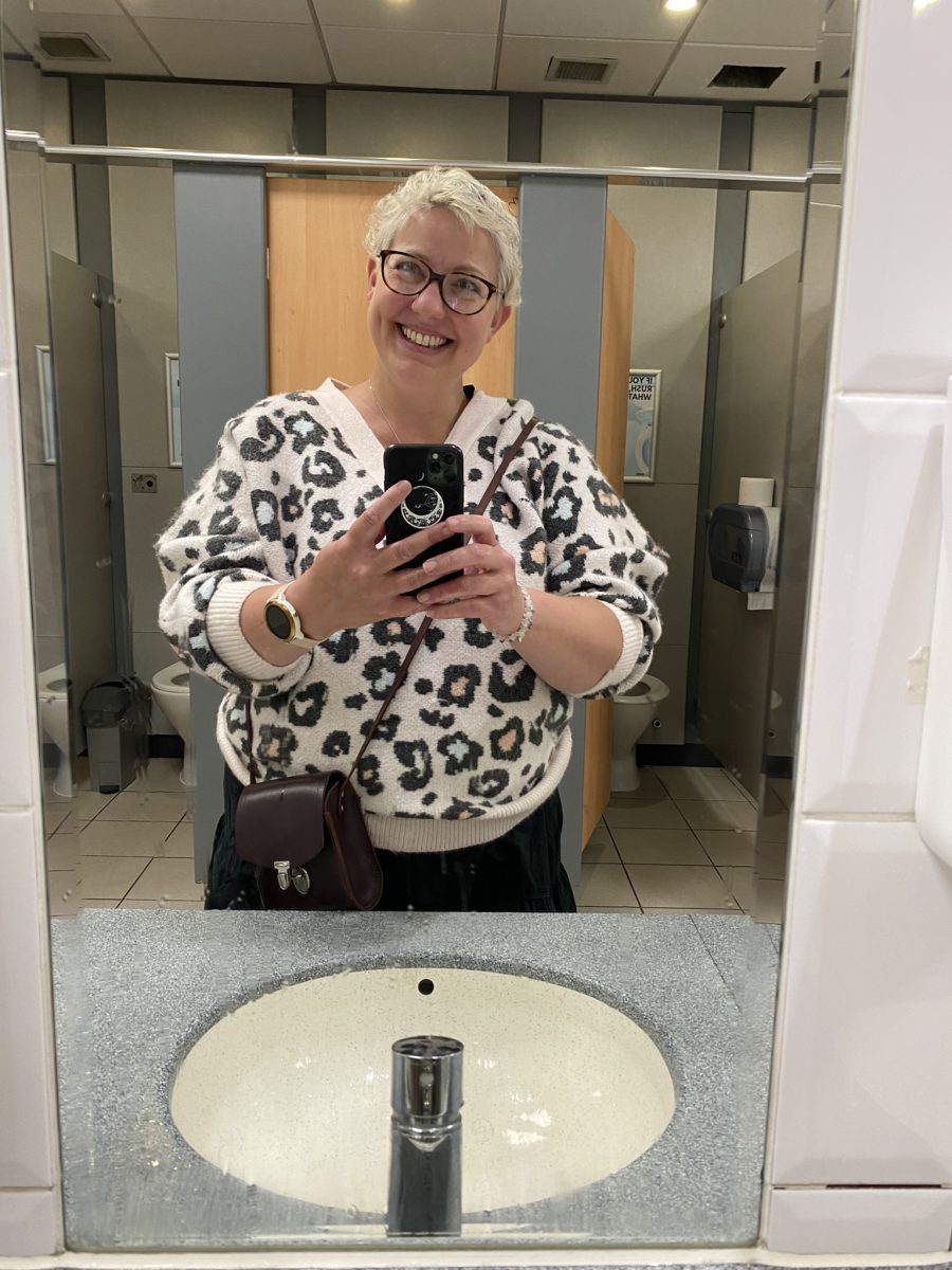 I did take a selfie in a service station toilet wearing the lovely new jumper I accidentally bought in Sainsburys on the way down.